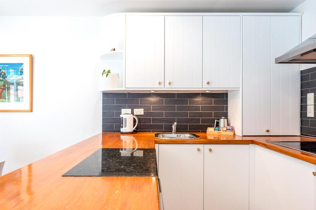In this upstairs apartments, you’ll find space to stretch out and truly settle in. Cook up a feast in your fully equipped kitchen, or wander a few steps to Ki Māha, 372 or Charley Farley’s for a taste of Waiheke dining.